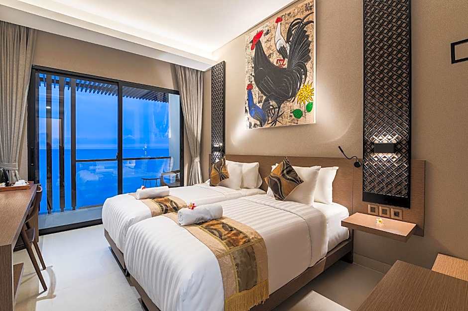 This twin room features a pool with a view. This air-conditioned twin room is consisted of of a flat-screen TV with cable channels, a private bathroom as well as a balcony with sea views. The unit has 2 beds.